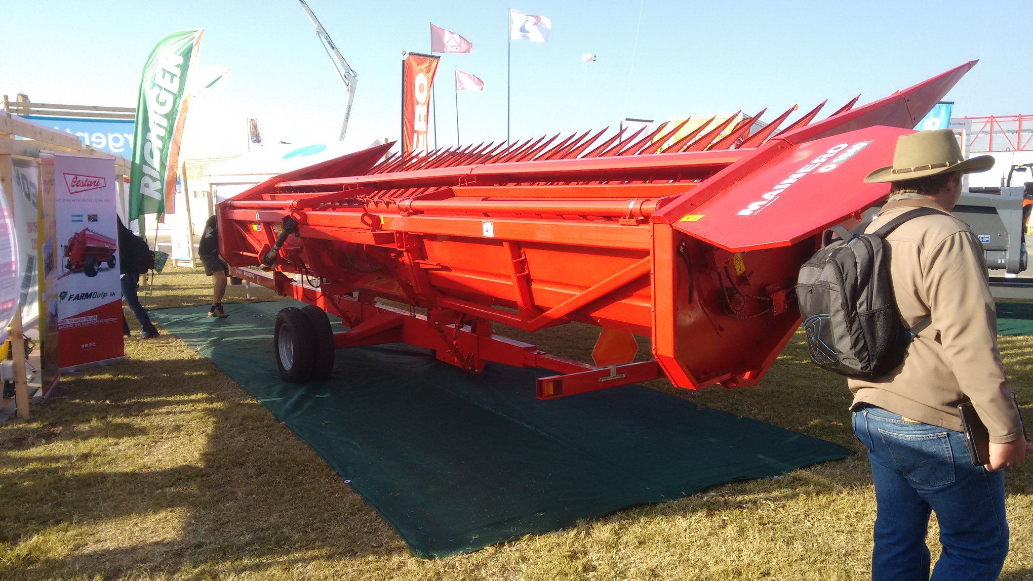 Con el objeto de obtener una regulación simple y rápida de ambos elementos simultáneamente, están montados sobre el mismo soporte sin ningún tipo de vinculación con los laterales del cabezal y su posición se modifica sobre la marcha desde la cabina del operador mediante cilindros hidráulicos compensados.