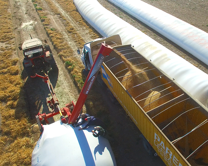 Tubo de descarga de gran capacidad y sin quiebres, reduce potencia consumida, aumenta capacidad de descarga y fundamentalmente reduce rotura de grano y desgaste del tubo y sin fin de descarga.